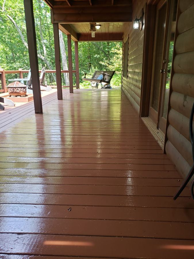 This beautiful cabin in Blue Ridge, GA had an expansive deck that needed restained. The owner called us in because they knew this was our specialty. The final stain application looked great and they were very happy!